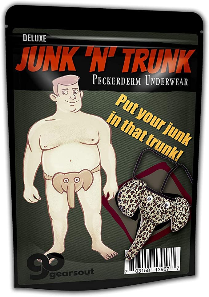 When looking for gag gifts for men, it can be a jungle out there. Bring the adventure home with our Deluxe Junk in Trunk funny naughty mens gift for Christmas, birthdays, Valentine’s Day, and anniversaries. Surprise your personal Tarzan with a hilarious pair of elephant trunk underwear. This animal print elephant is slightly sheer and completely laugh-out-loud funny. Once he gets his hands on this silly present, you’ll find yourself asking, “Is that a pachyderm in your pants, or are you just happy to see me?” Either way … the answer is yes.