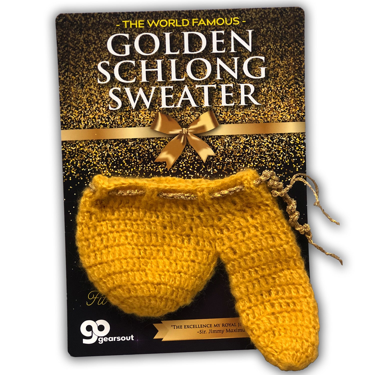 As delicate as the schlong is, it deserves something extra special to keep it warm at night. Finally, a worthy willy warmer has been created to handle the cozy care of an area as important as the family jewels…The Golden Schlong Sweater! This hand-knit crotch cloak will have your royal goody bag feeling like a million bucks, no matter how chilly it gets.