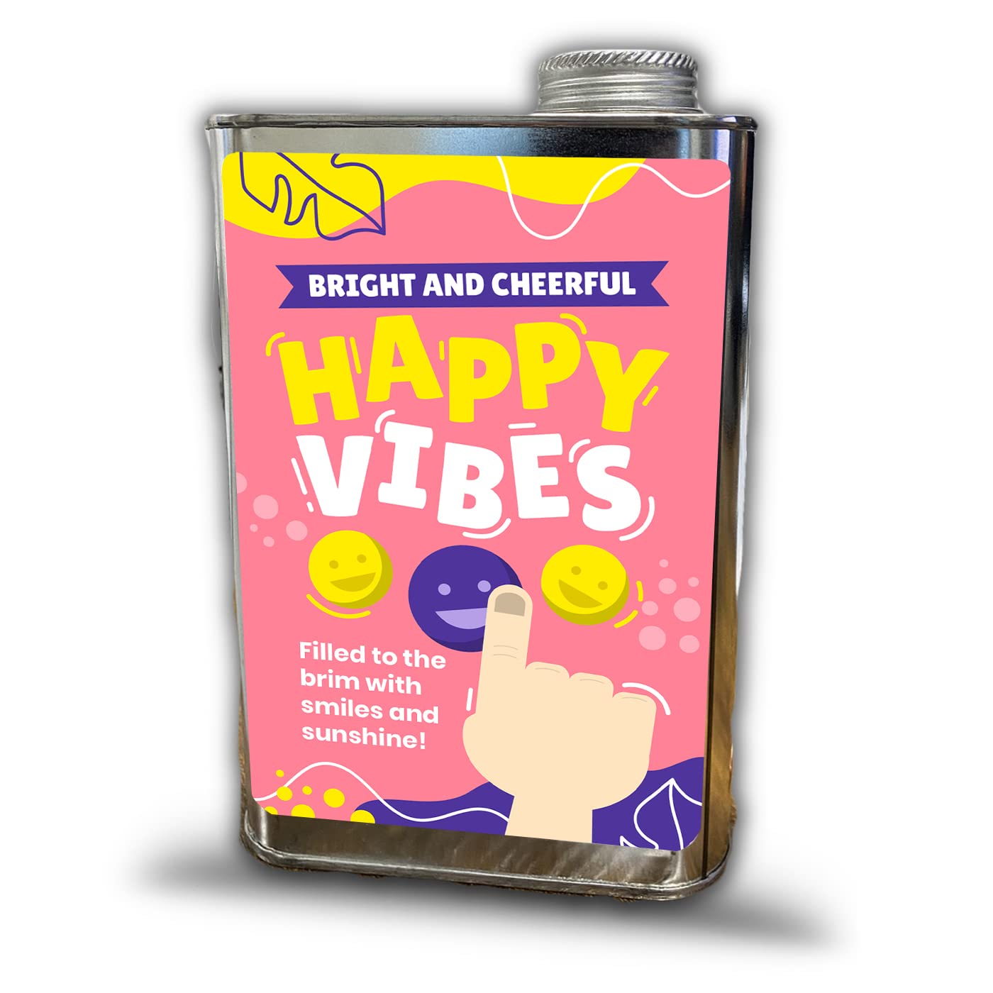 Happy Vibes prank gift tin is a little hippy dippy and a whole lot of fun for everyone. Stealthily leave a can on a work friend’s desk. Wrap one up and pop it into your grumpy grandpa’s Christmas stocking. Slip some Happy Vibes into your son or daughter’s next college care package before final exams. This fun gag gift for men, women, teens, and kids is a cute gift idea for any occasion. Promotions, graduations, get well wishes, weddings, retirements … every day is a good day to make someone feel bright and cheerful.