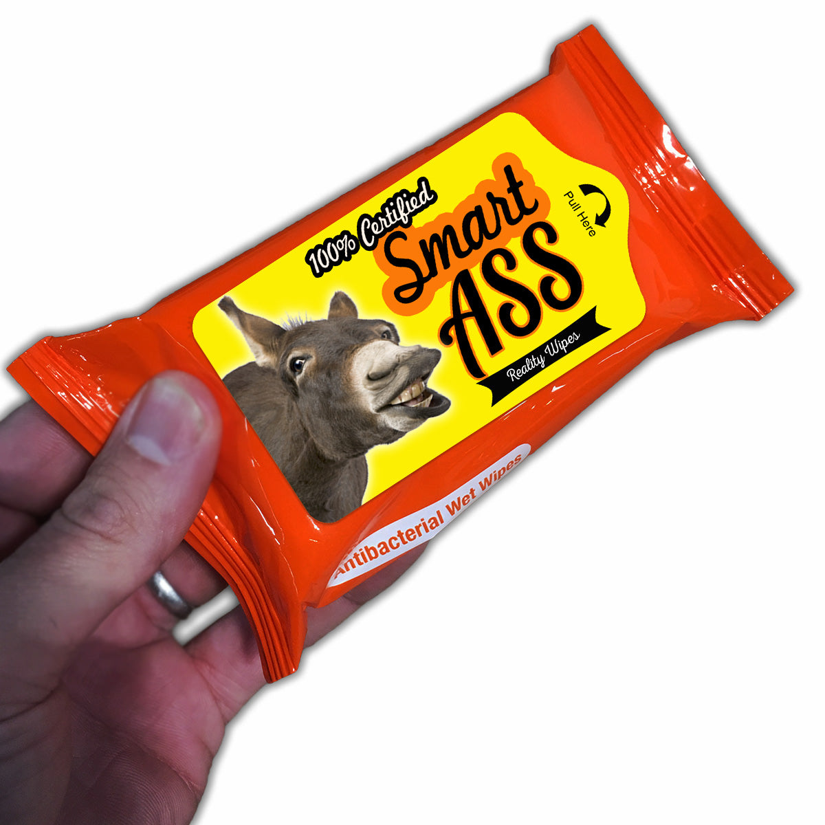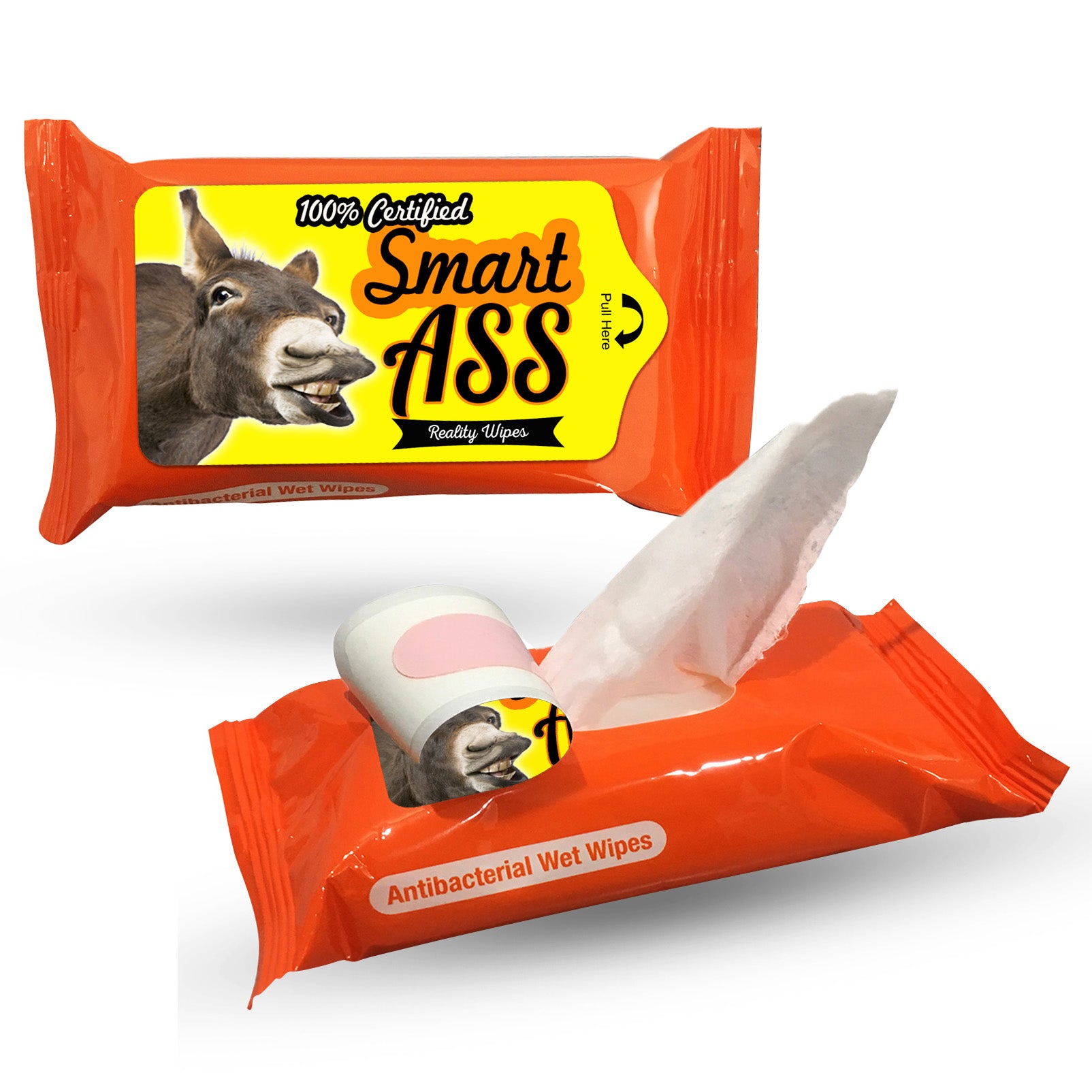- Package says: 100% Certified Smart Ass Reality Wipes