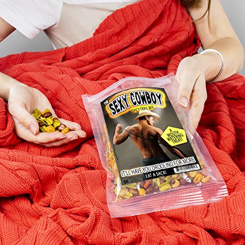 Show your best friends how much you love them with this sexy western themed gag gift for women. Who doesn't want to bring girlfriends a smile with this funny Christmas stocking stuffer for your BFF? This spicy snack food also makes a great gift for your wife or sister. If you are looking for a funny gift alternative to a boring coffee mug with funny sayings give Uncle Franks trail mix a try today! Men, Women, and Teens will love finding this wild holiday surprise in a gift box or under the Christmas tree. Premium ingredients go into every bag of our Sexy Cowboy Trail Mix so you can indulge with peace of mind. This salty nut mix features a delightful combination of exciting textures and flavors. This Sexy Cowboy sesame mix with peanuts is the perfect way to enliven a party or increase it's popularity as a movie night treat. The ordinarily tame nutty flavor found in the assortment of nuts in this mixture is transformed into a wild and crazy blend. Crunch down on guacamole bites, hot cajun sticks, almonds and more with this delectable blend of salty, savory, and spicy favorites. Snack gift for spice lovers should be as funny as they are delicious. The diverse textures are just one feature that makes this mix so unique and enjoyable. If your searching for funny gifts for a mom who loves spicy things this naughty snack food is for her. Of course this trail mix is enjoyed best while watching old western movies with your girlfriends.